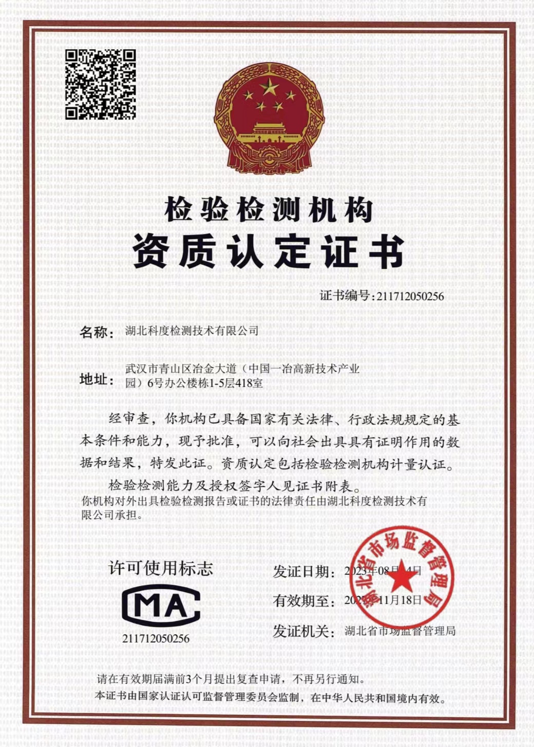 湖北科度檢測(cè)技術(shù)有限公司是一家專業(yè)從事環(huán)境類及相關(guān)領(lǐng)域檢測(cè)的第三方檢測(cè)機(jī)構(gòu),公司已通過(guò)湖北省市場(chǎng)監(jiān)督管理局CMA計(jì)量認(rèn)證,可以面向社會(huì)出具權(quán)威CMA檢測(cè)報(bào)告。 我公司實(shí)驗(yàn)室嚴(yán)格按照國(guó)家標(biāo)準(zhǔn)建設(shè),擁有一大批國(guó)內(nèi)外先進(jìn)儀器設(shè)備及現(xiàn)代化配套設(shè)施,并有經(jīng)驗(yàn)豐富的中高級(jí)專業(yè)技術(shù)人員和嚴(yán)格的實(shí)驗(yàn)室質(zhì)量保證體系為項(xiàng)目運(yùn)作提供強(qiáng)力支撐。 作為第三方檢測(cè)機(jī)構(gòu),公司始終以高度的社會(huì)責(zé)任感經(jīng)營(yíng)企業(yè),以“公正、嚴(yán)謹(jǐn)、高效”為宗旨,依托專業(yè)的技術(shù)實(shí)力為客戶提供專業(yè)優(yōu)質(zhì)檢測(cè)服務(wù),受到政府、企業(yè)和社會(huì)各界的廣泛關(guān)注和認(rèn)可。